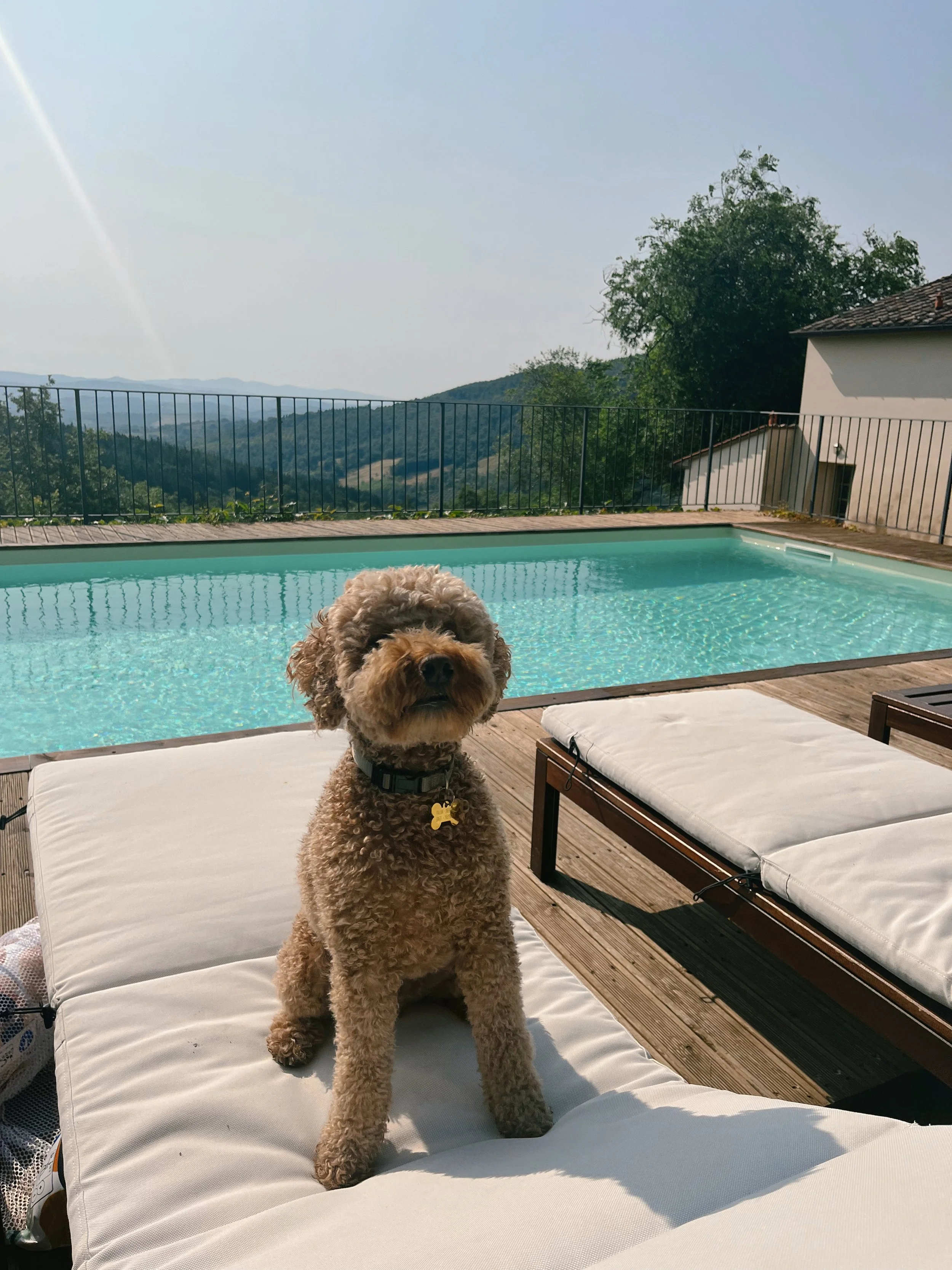 Meet Teddy, my faithful furry sidekick and the real brains behind the operation (don't let the wagging tail fool you). He's got an eye for style and a nose for innovation.
